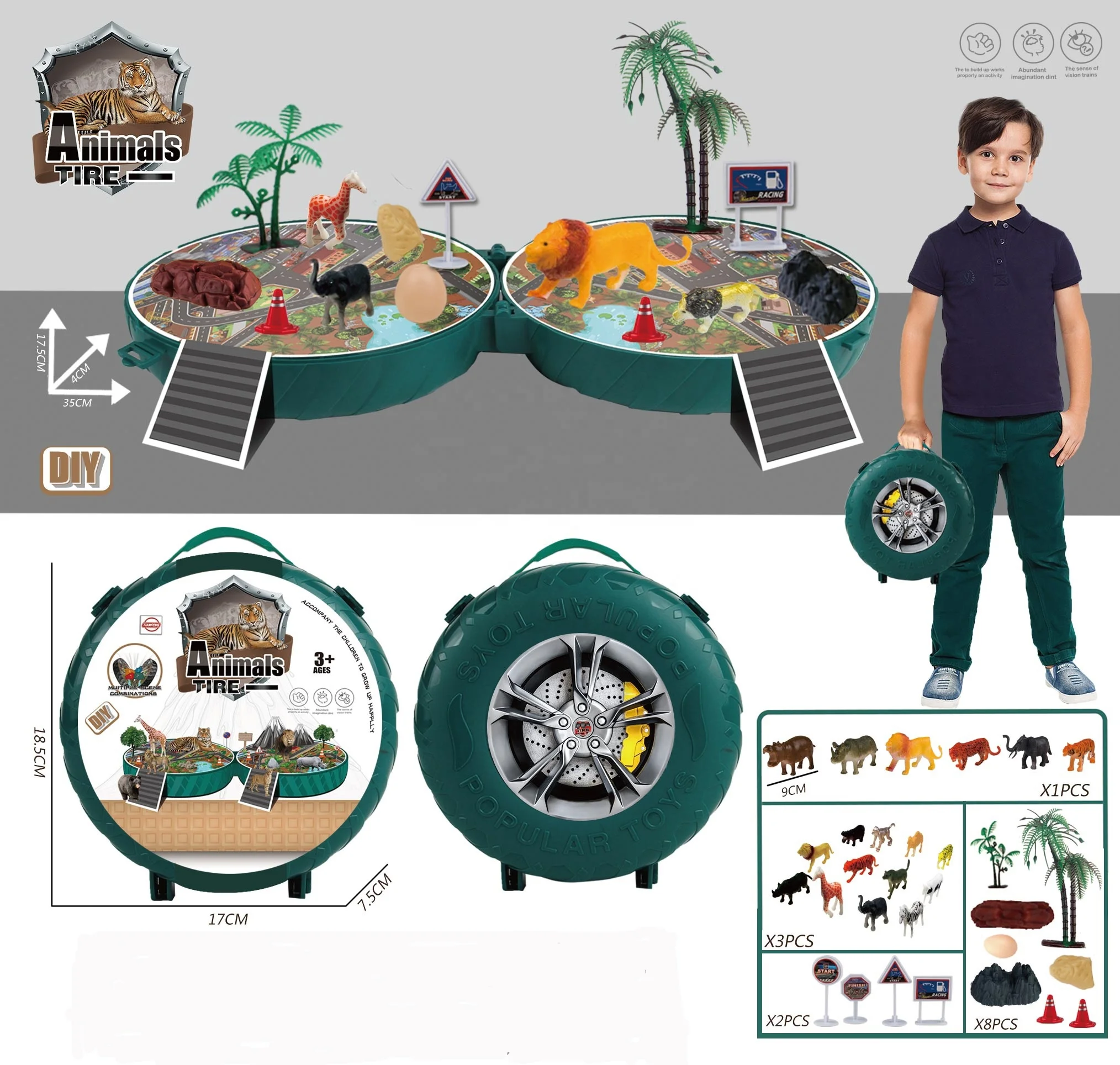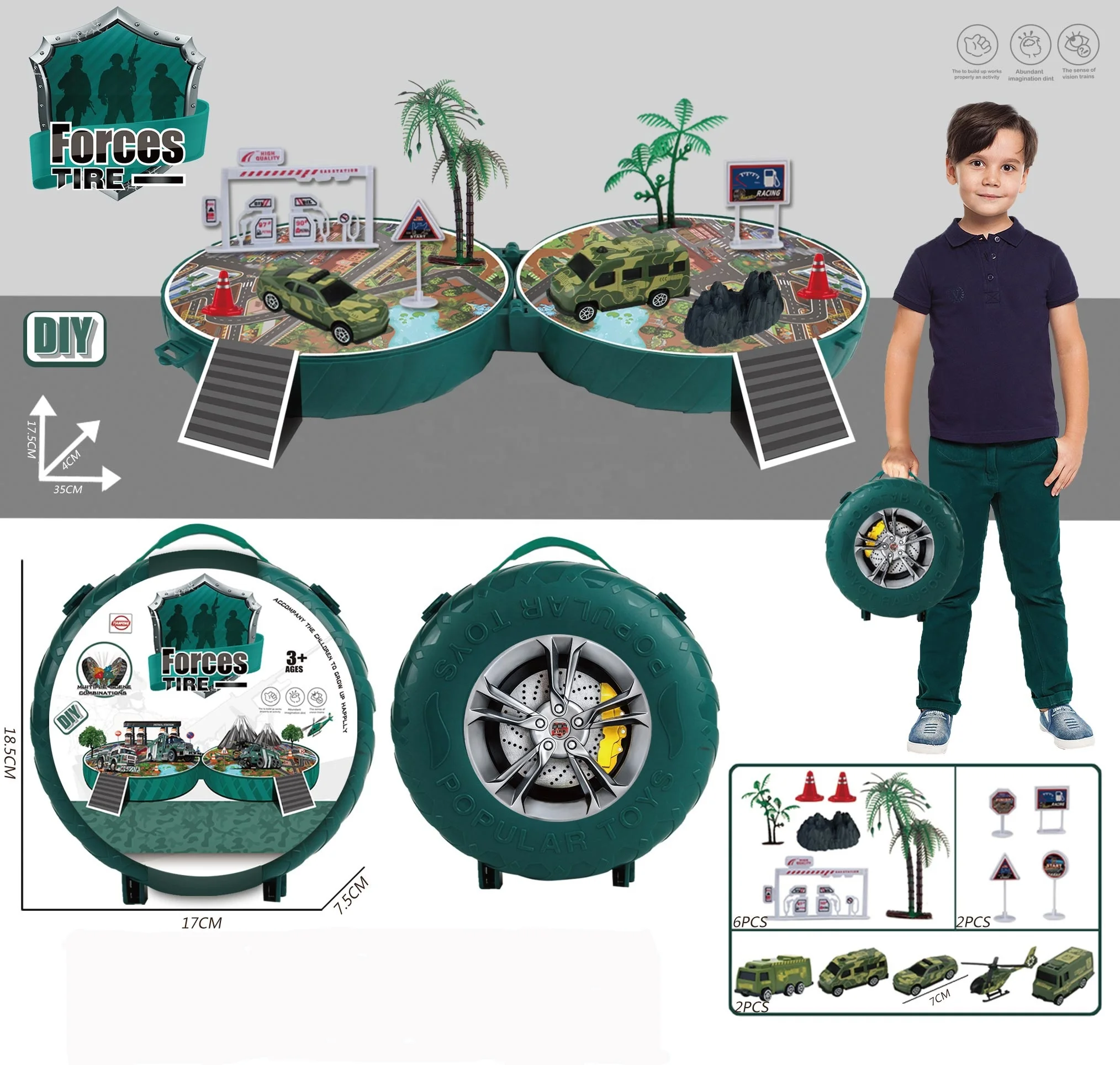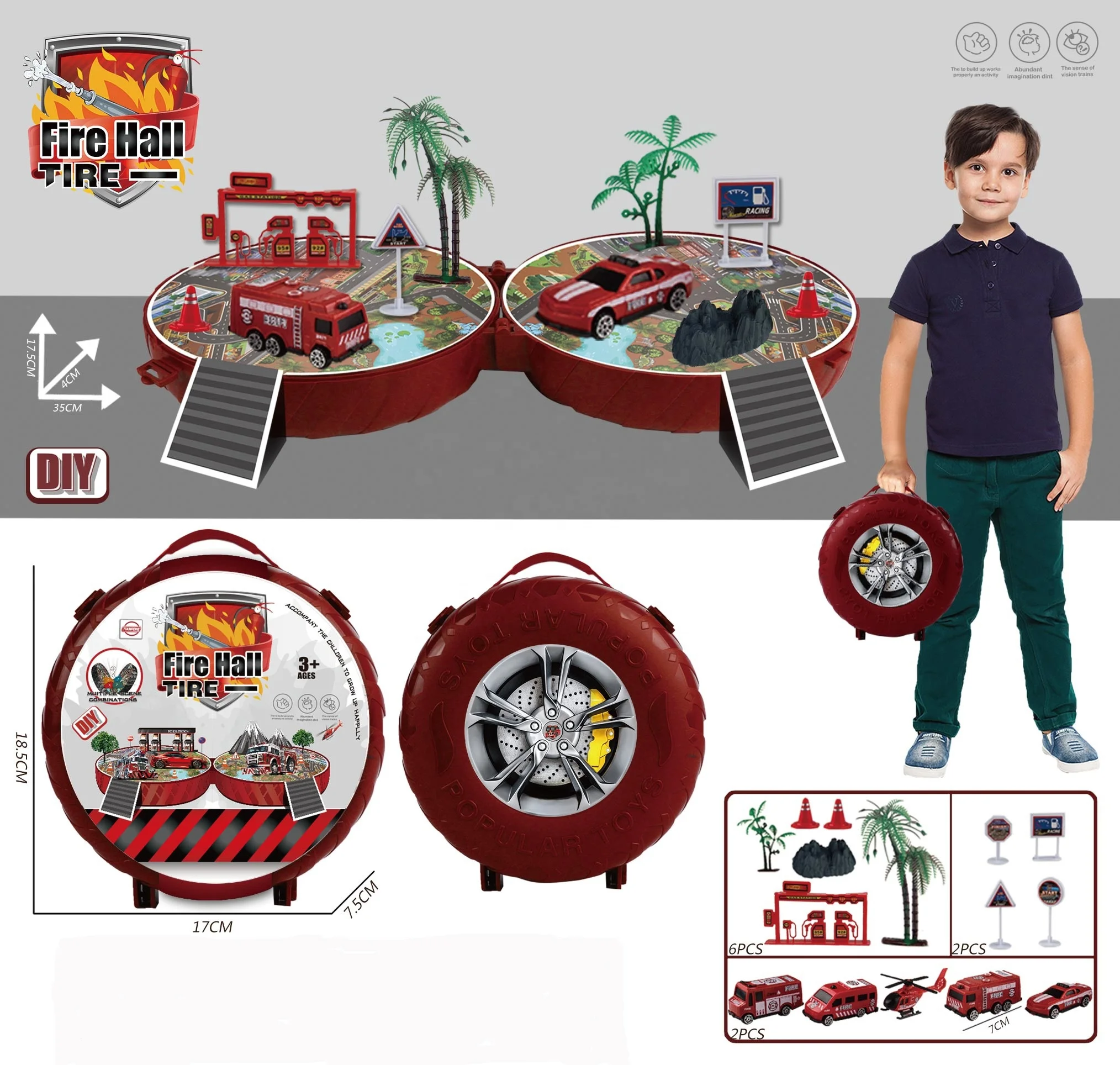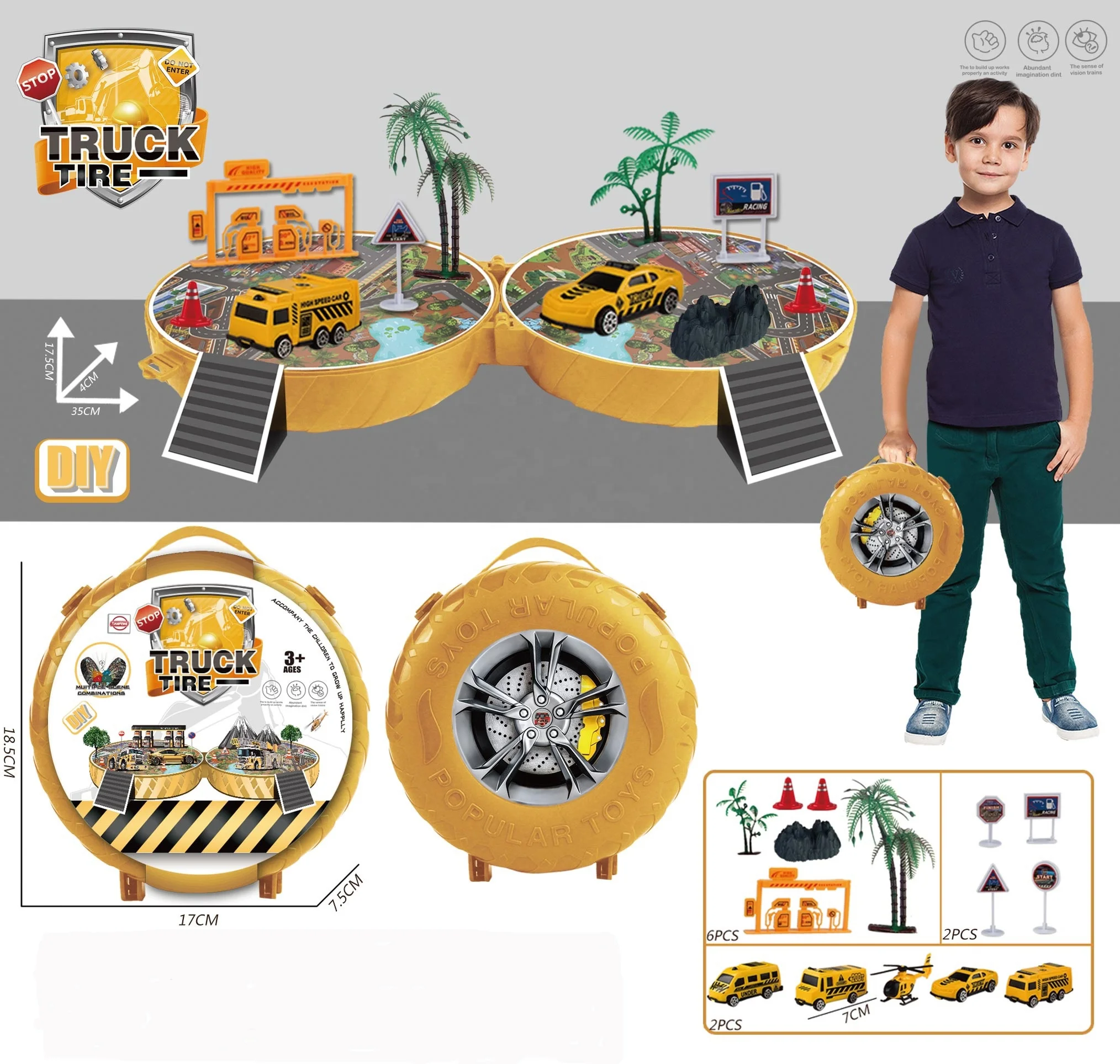 ITTL Kids Set Toy Small Scene Car Tire 2 Vehicles and Accessories Plastic Educational Toy Gift for Child